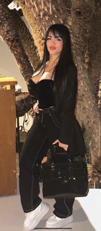 Haare:schwarz, rückenlang, glatt